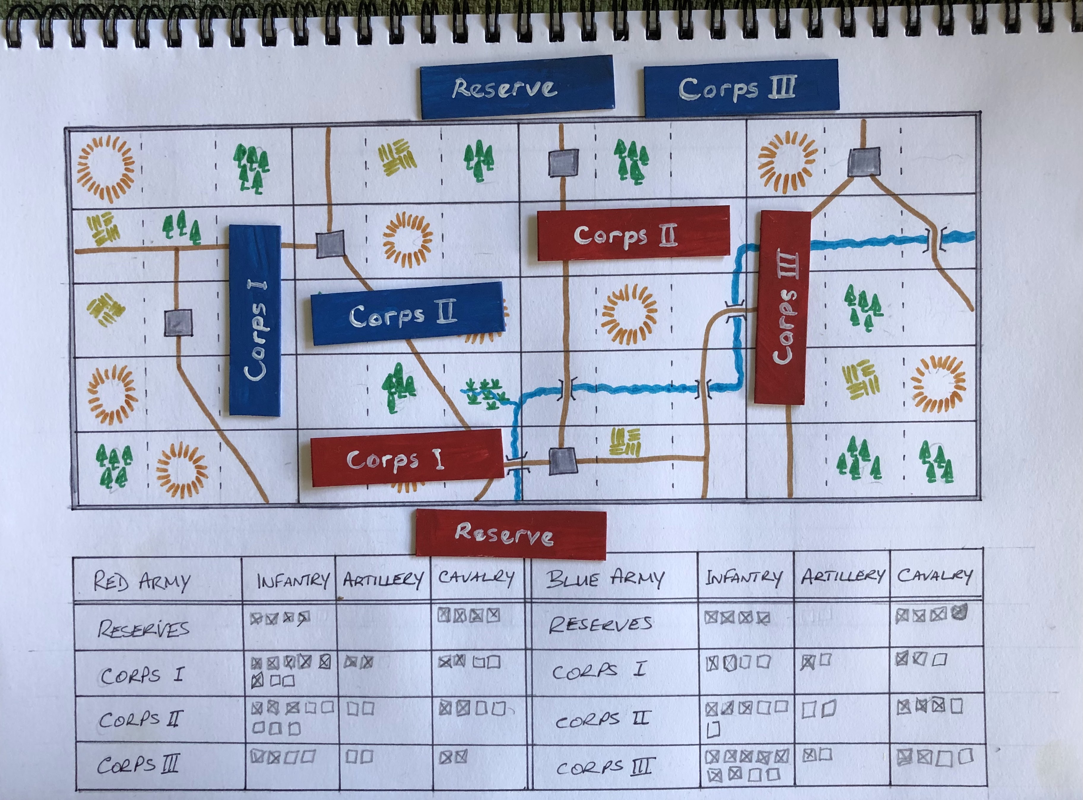 (Note - I made a mistake when setting up Red forces who should have had another infantry unit)